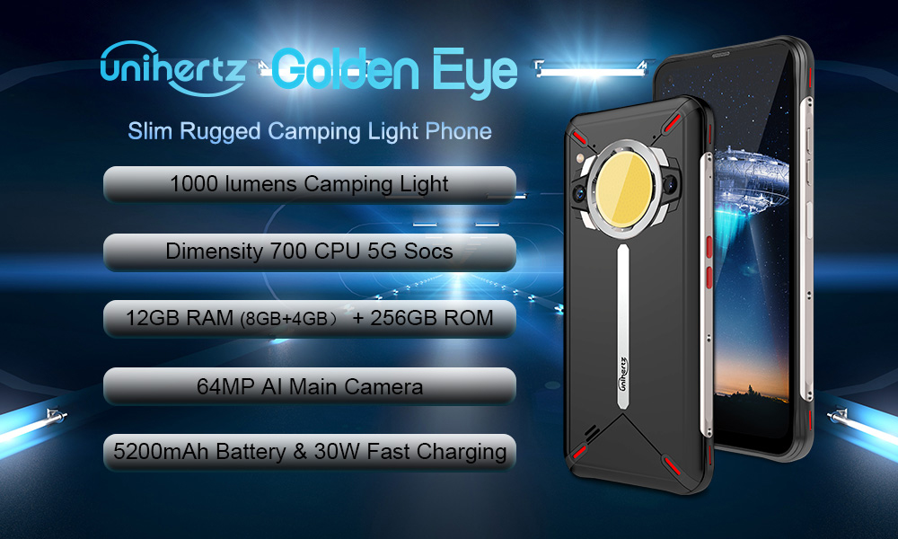 Unihertz-1 TICK TOCK Golden Eye (com luz), CPU: Dimensity 700 120Hz tela principal de 6,53 polegadas/tela secundária de 1,3 polegadas, [banda de frequência global 5G] Golden Eye (com luzes) smartphone de três provas, 8 GB de RAM, 256 GB de ROM